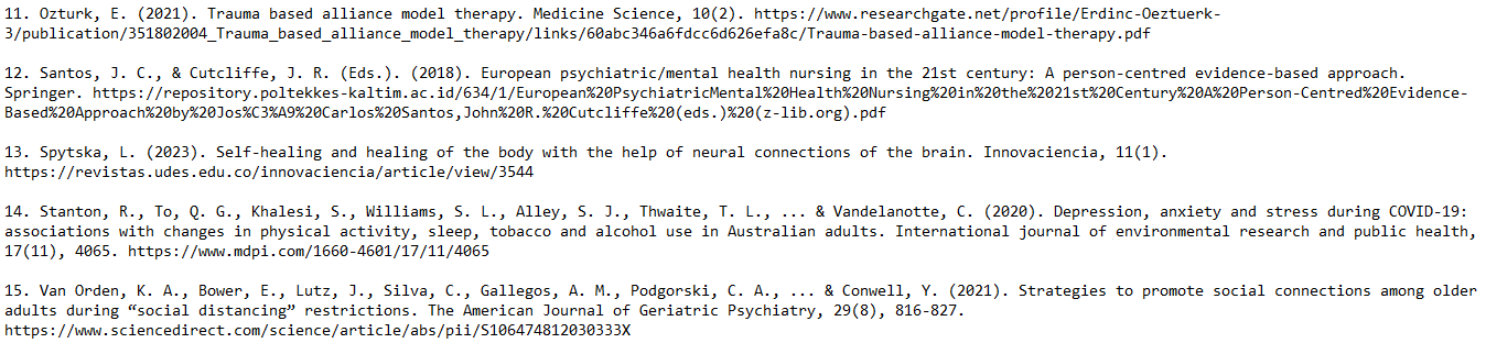 By considering the viewpoint of Ozturk(2021), family support can be regarded as an effective counseling strategy in the case of trauma-based depression, It can be regarded as an evidence-based on which family therapy has been suggested here. On the other hand, Stanton et al., (2020) have stated that being involved in activities can help a depressed person to eradicate negative thoughts and that’s why regular activities have been suggested here. It means that the strategies have been designed with proper evidence which means an evidence-based care approach is being used here.